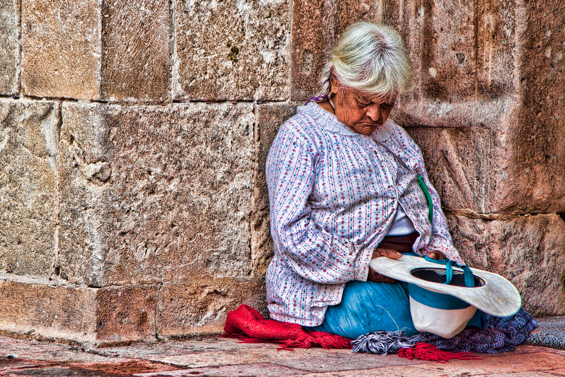 Fatigue... A beautiful scene of a tired bag seller in Tequisquiapan, Queretaro, México